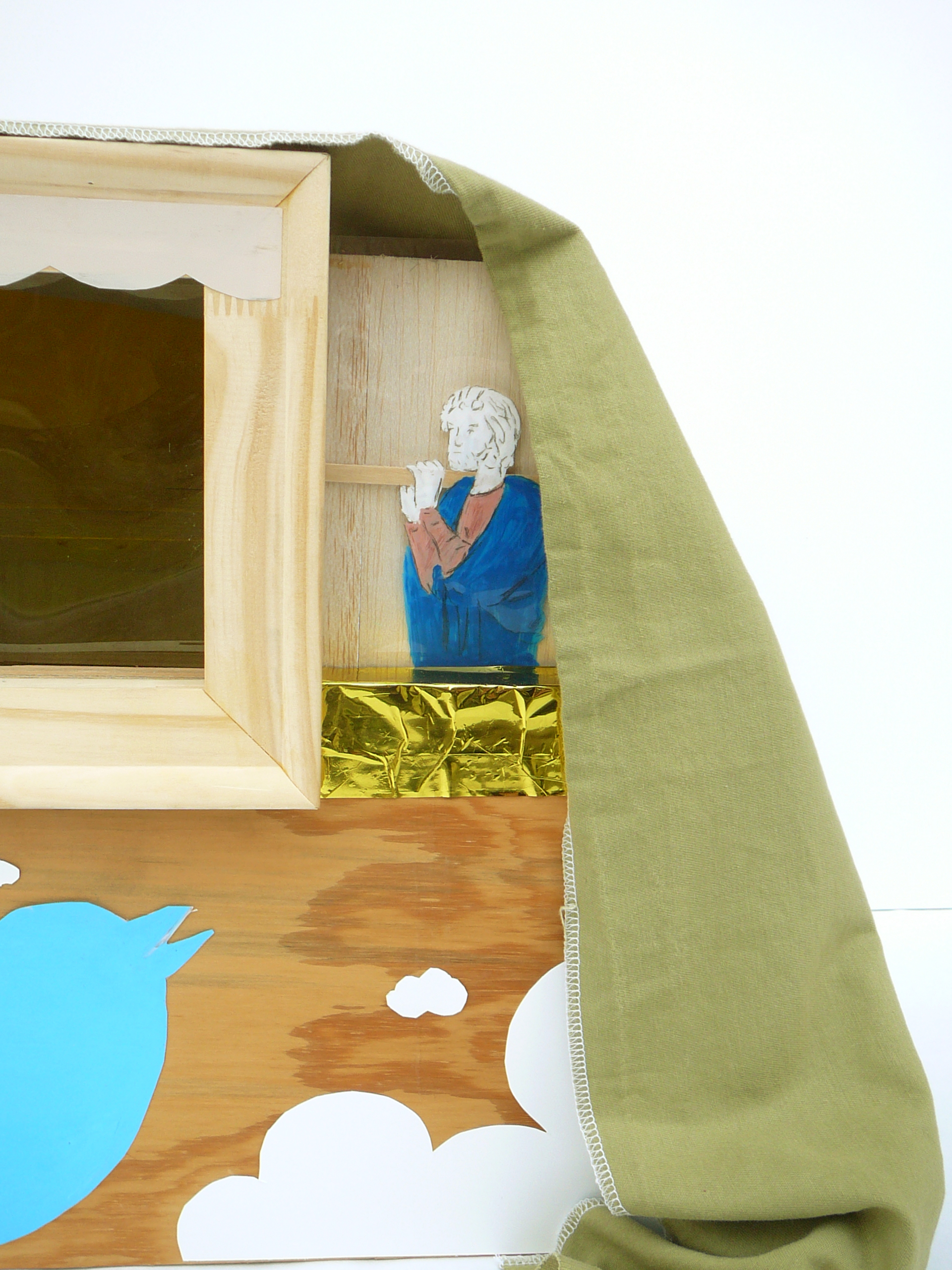 Mixed Media: Solarplate, Drypoint, Acrylic, Collage, Wood, Bristol Board, Fabric, Lights.
